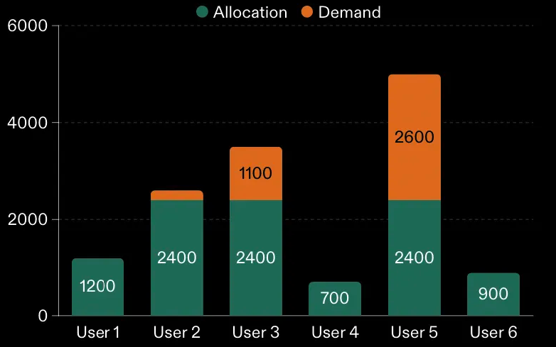 With 6 users and a total sale of $10,000, each participant could receive a maximum of $1,666.67 in tokens. Accordingly, all users whose requests were equal to or below this amount receive their full requested allocation.